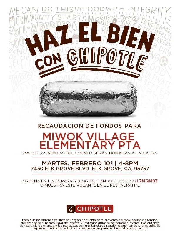 Join us for a delicious and easy way to support our school—Chipotle Fundraiser Night! Whether you choose to dine in or order carry-out, your meal will help give back to our school.